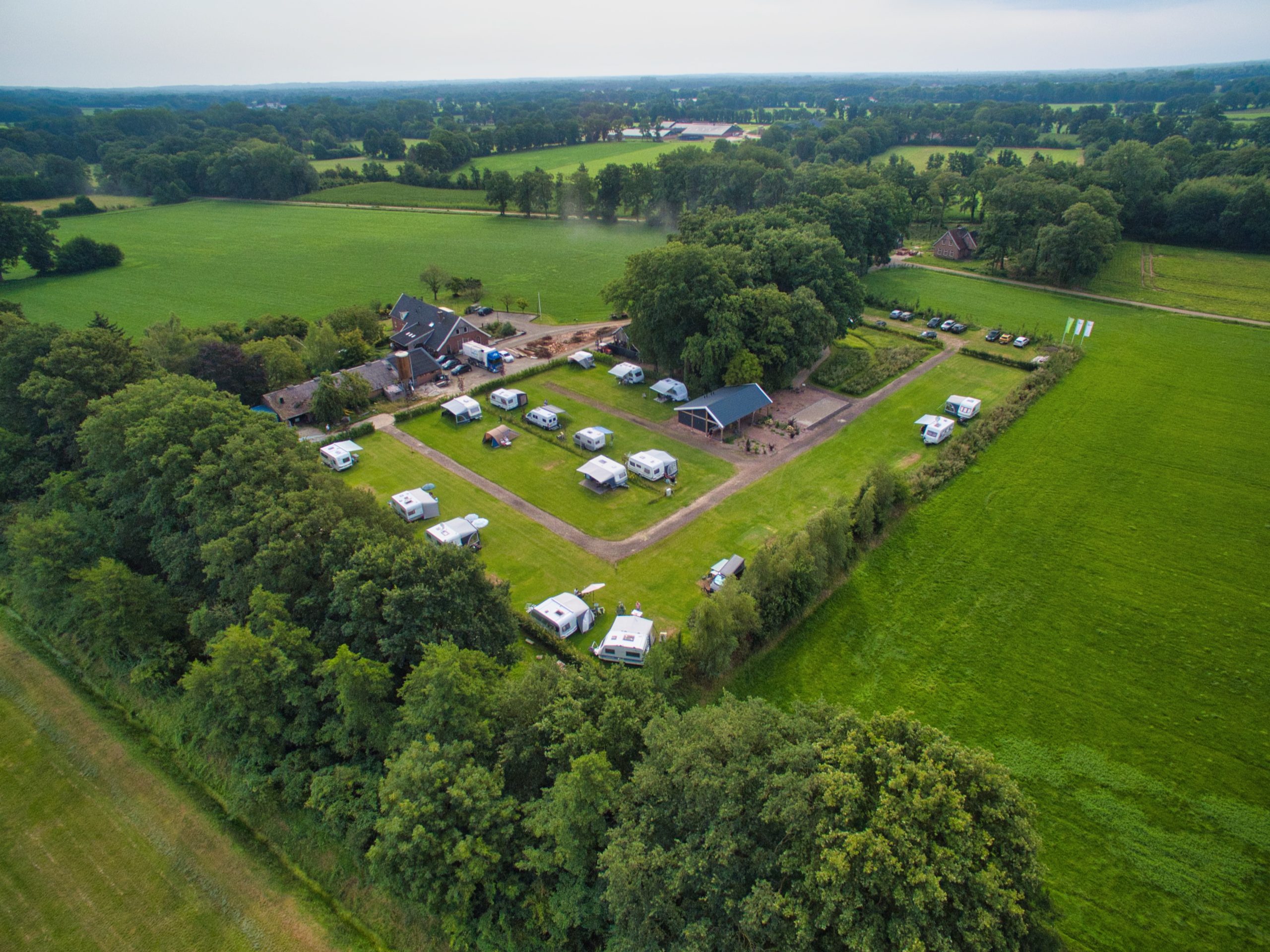 De camping ligt rustig, omgeven door natuur en open landschap. Je wordt wakker met frisse lucht, vogelgeluiden en uitzicht dat nooit verveelt. De plekken zijn ruim en overzichtelijk, zodat iedereen zijn eigen stukje rust heeft, maar het contact met elkaar altijd dichtbij is.